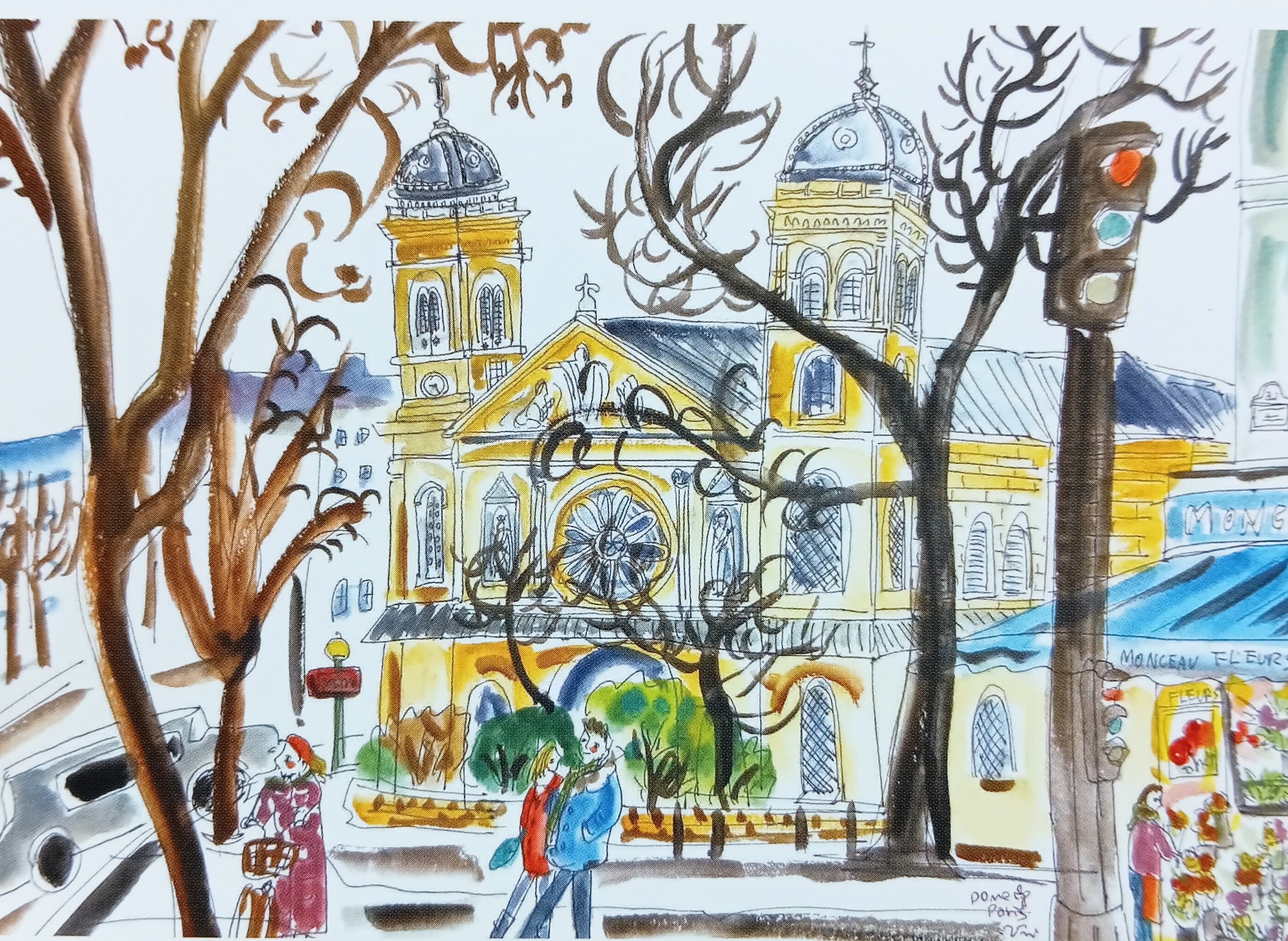 サイズはポストカードサイズ。裏面は白です。 パリ、スペインの絵の5枚セットです。 通常のポストカードよりは薄手ですが、ポストカードとしても使用できます。