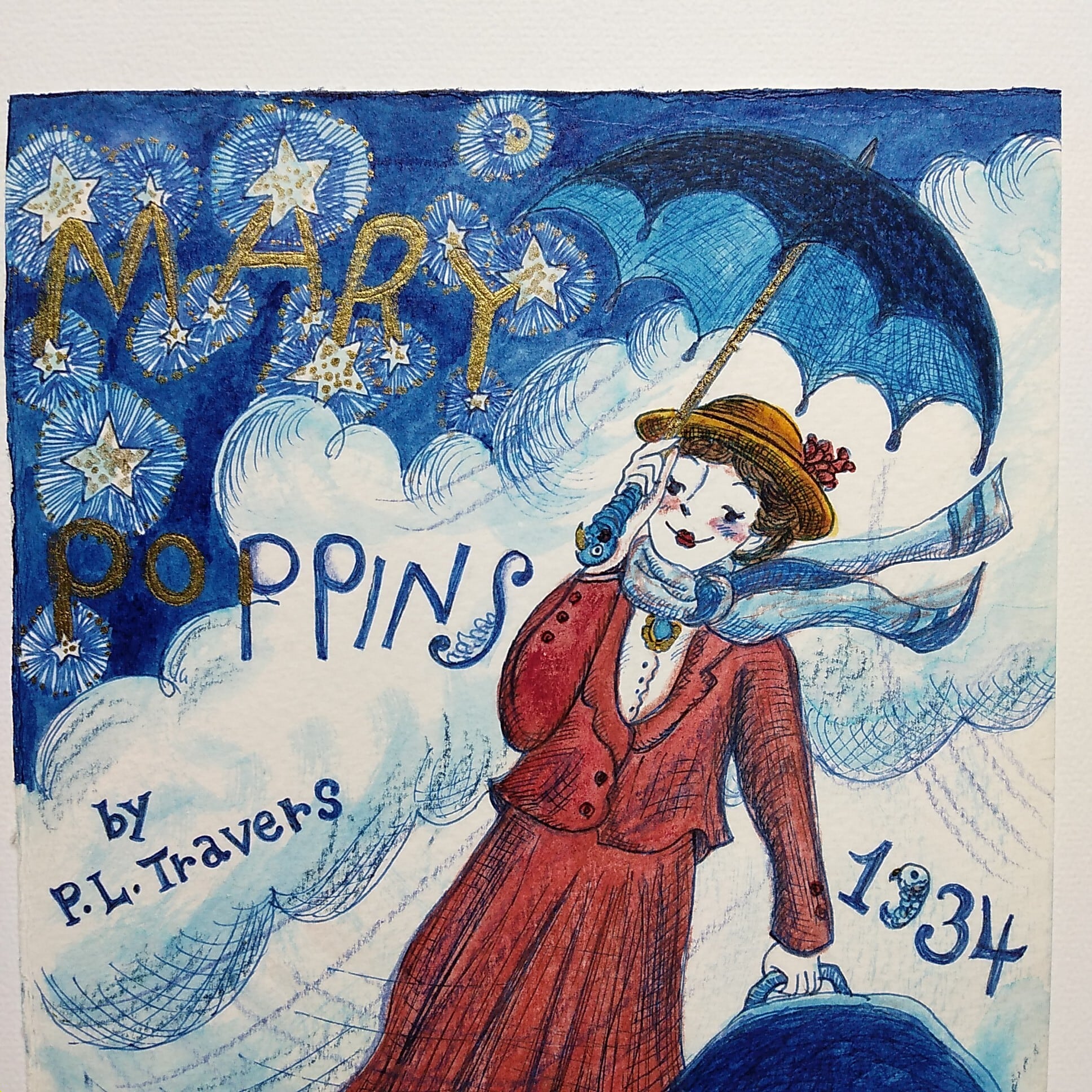 こちらは「こんにちは!物語」シリーズオリジナルイラストレーションの「風にのってきたメアリーポピンズ」です。