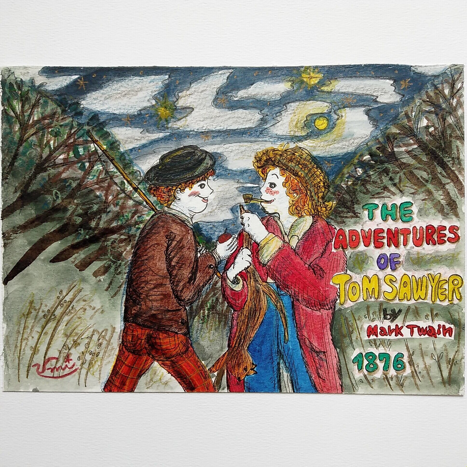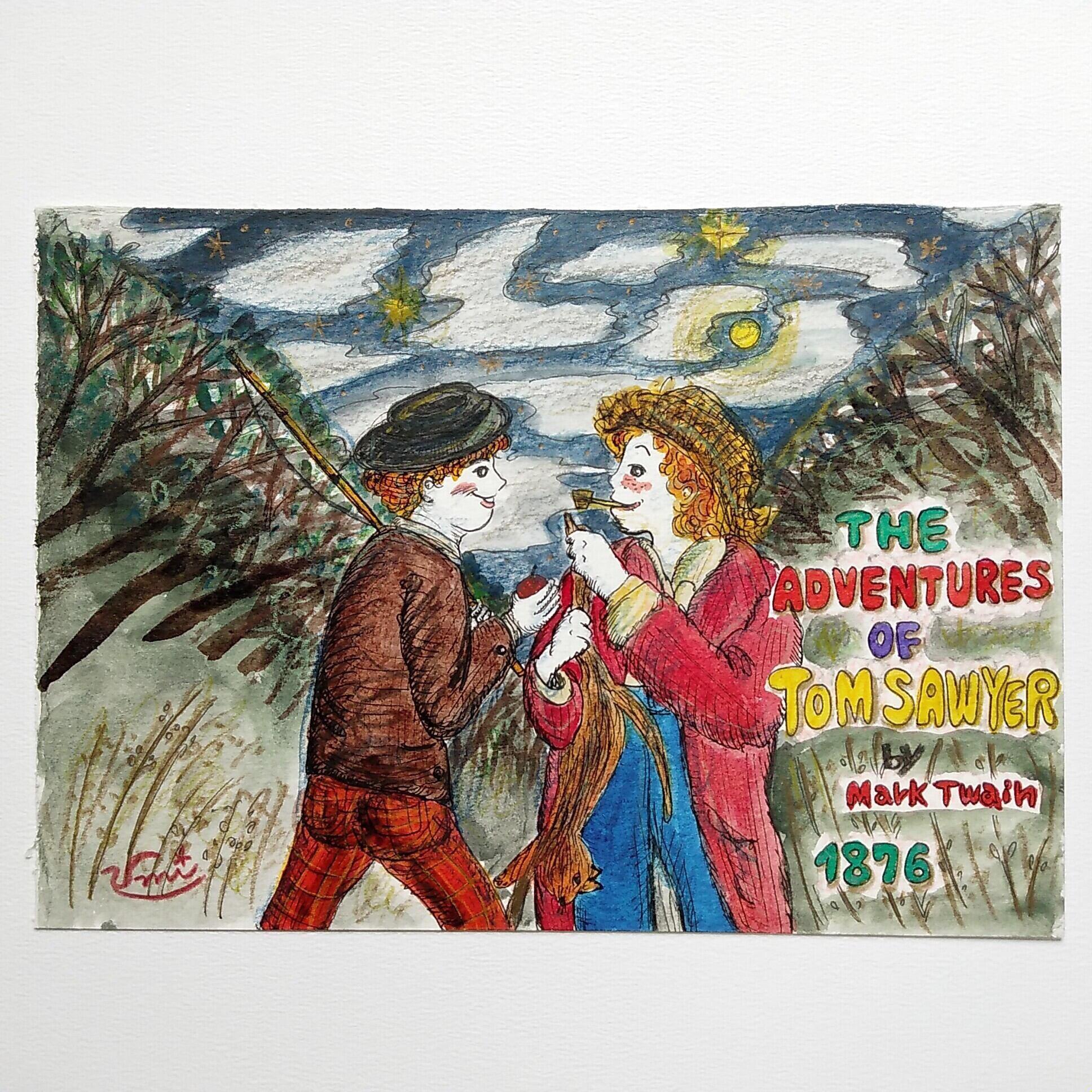 この絵は、トムソーヤーとハックルベリー・フィンの冒険を美しいイラストで再現した1枚です。